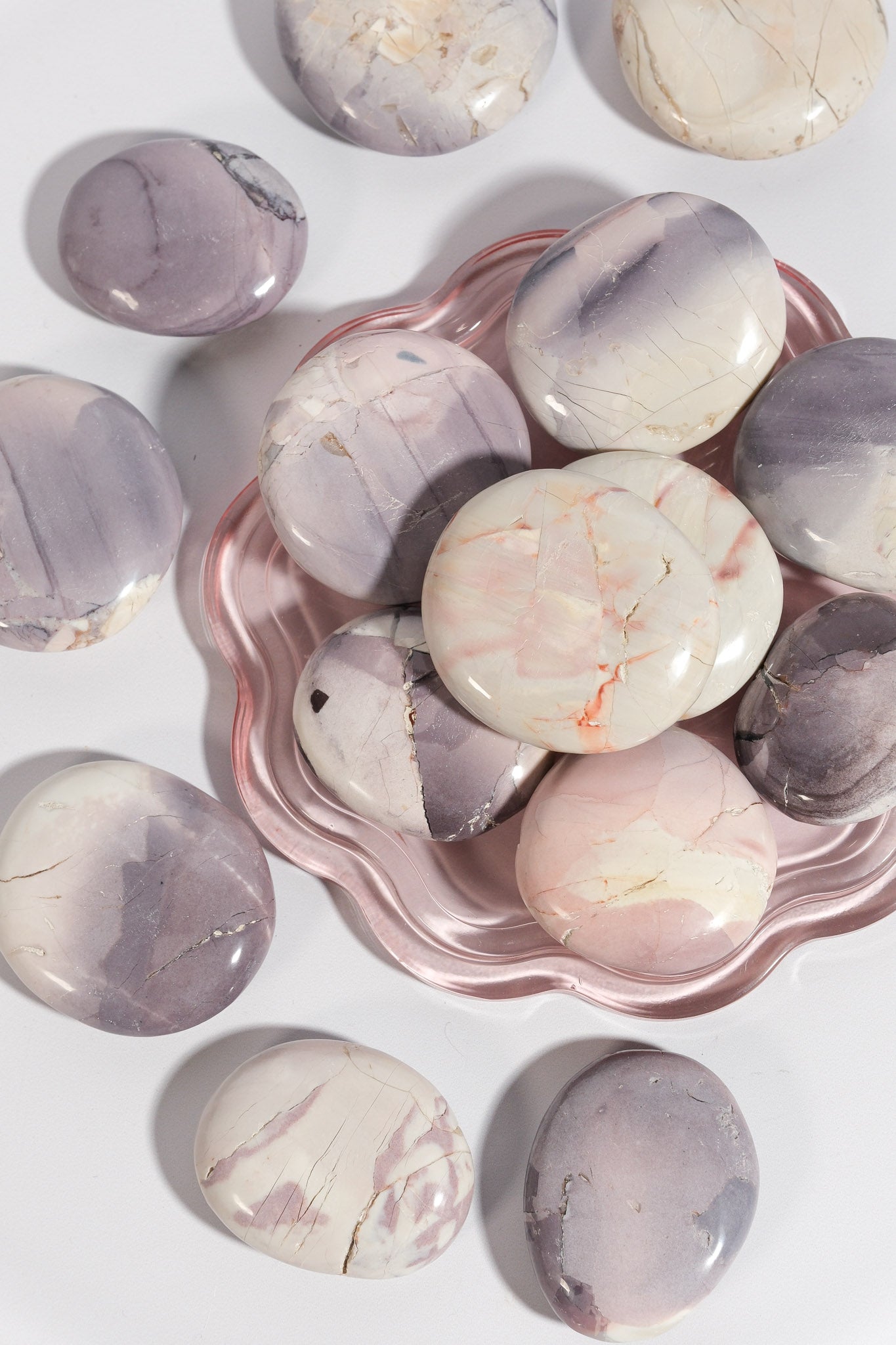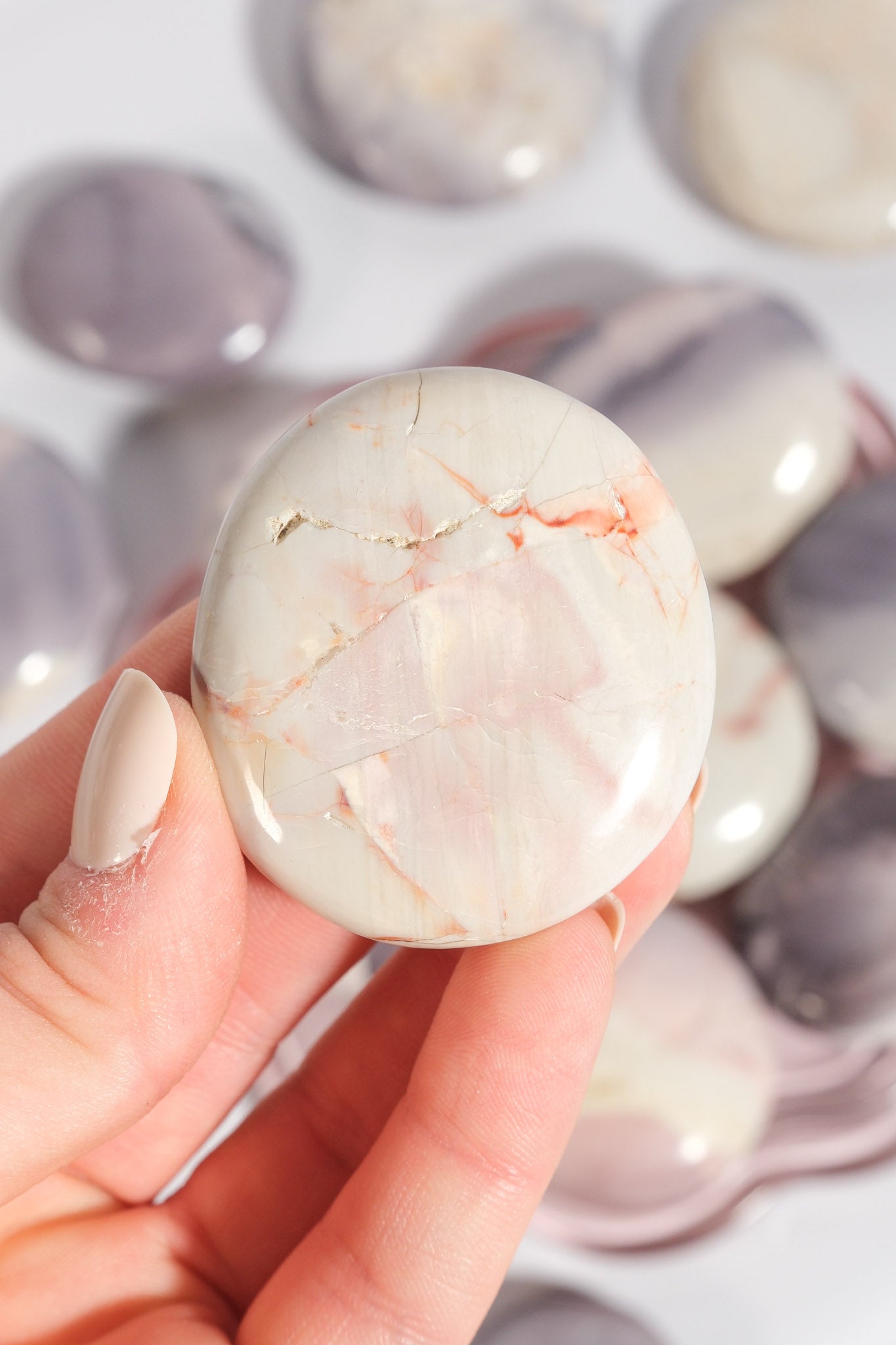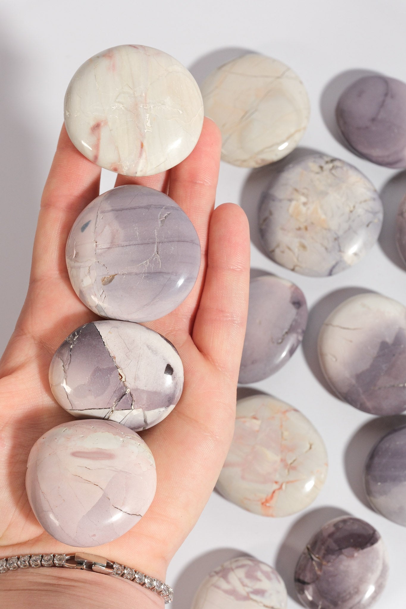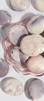 Hyacinth Jasper is a rare and beautiful stone with soft purples, blush pinks, and creamy neutrals that look like a painted sunset. It carries a gentle, refreshing energy that feels like stepping into spring — perfect for clearing emotional heaviness and inviting new beginnings. This stone encourages creativity, balance, and a fresh perspective, helping you feel calm yet inspired when life feels cluttered. Hyacinth Jasper is perfect for moments when you want to reset, reconnect, and find joy in the little things again.
