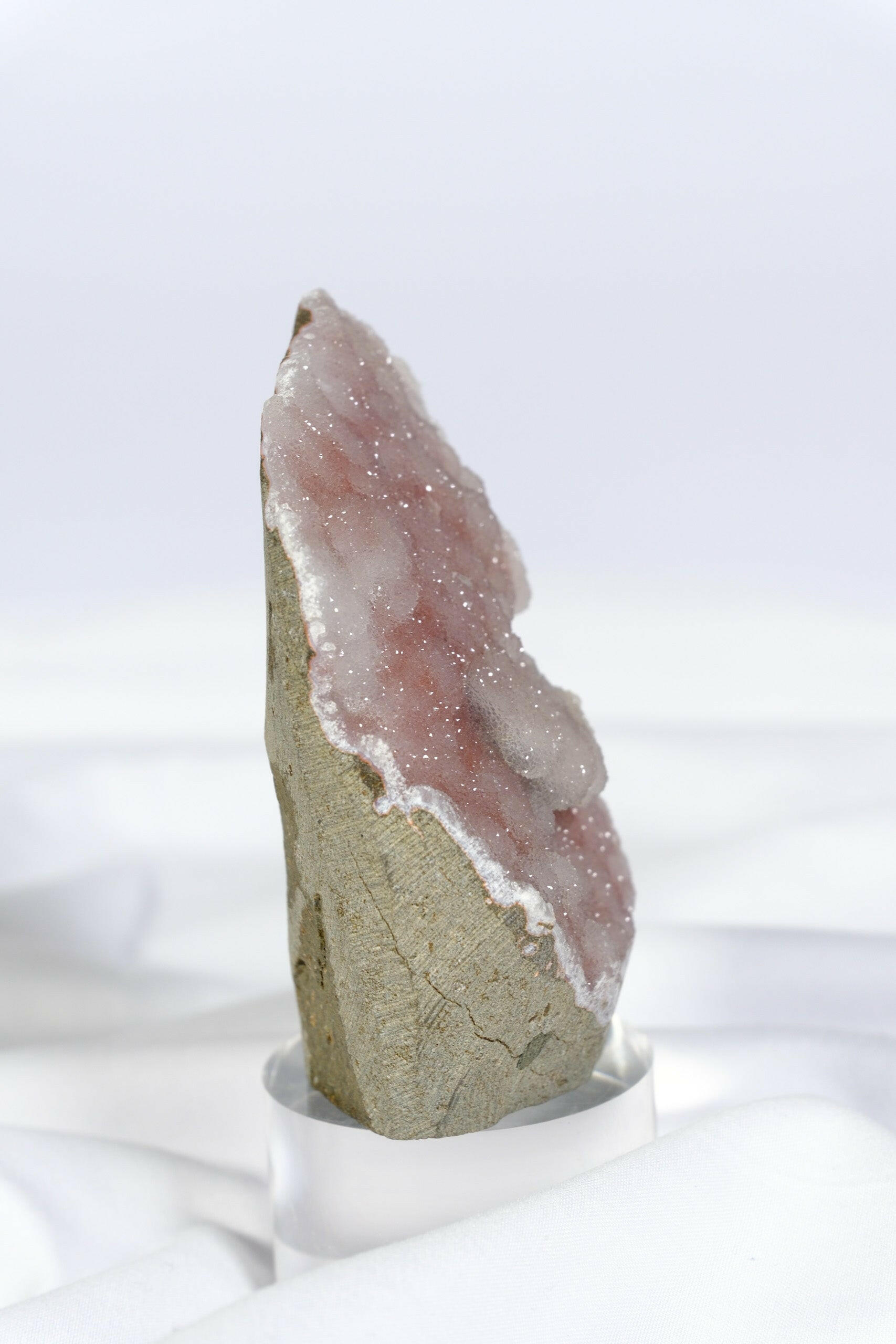 Pink Chalcedony is a tender stone of compassion that soothes emotional wounds and promotes inner peace. Its gentle energy encourages self-acceptance, emotional balance, and loving communication. This botryoidal formation from India amplifies the crystal's nurturing properties, making it perfect for heart healing and fostering deeper connections with yourself and others.